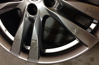 組立式ホイールのリム部分などによく使用されているアルマイト加工されているホイールも修理可能です。 メッキとの違いは、傷の下地が銀色であればアルマイトです。黒や赤茶色であればメッキの可能性が高いです。